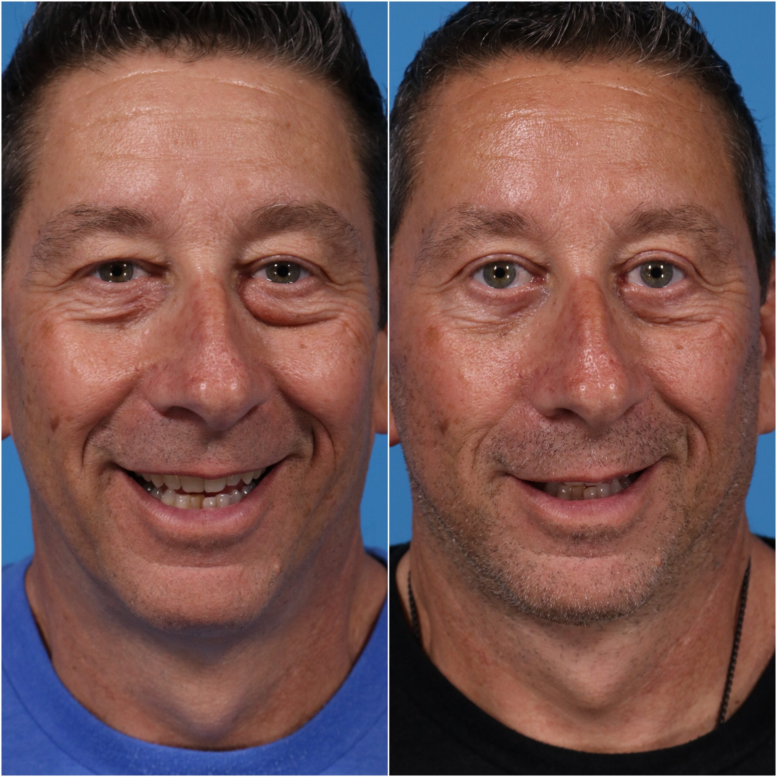 Eyelid surgery can improve drooping or heavy upper eyelids, a common concern among male patients, but many men choose to leave the fine lines around the eyes for a more natural appearance.